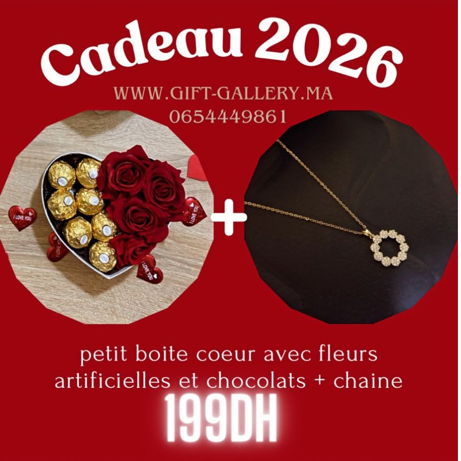 BOITE COEURS TAILLE S AVEC FLEURS ARTIFICIELLE ET CHOCOLATS + BIJOU