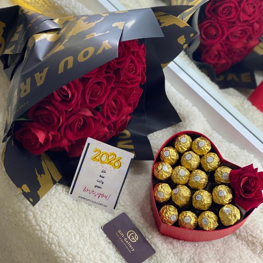 FLEURS NATURELLE + BOITE CHOCOLATS MIX + ENSEMBLE BIJOUX د.م. 950,00